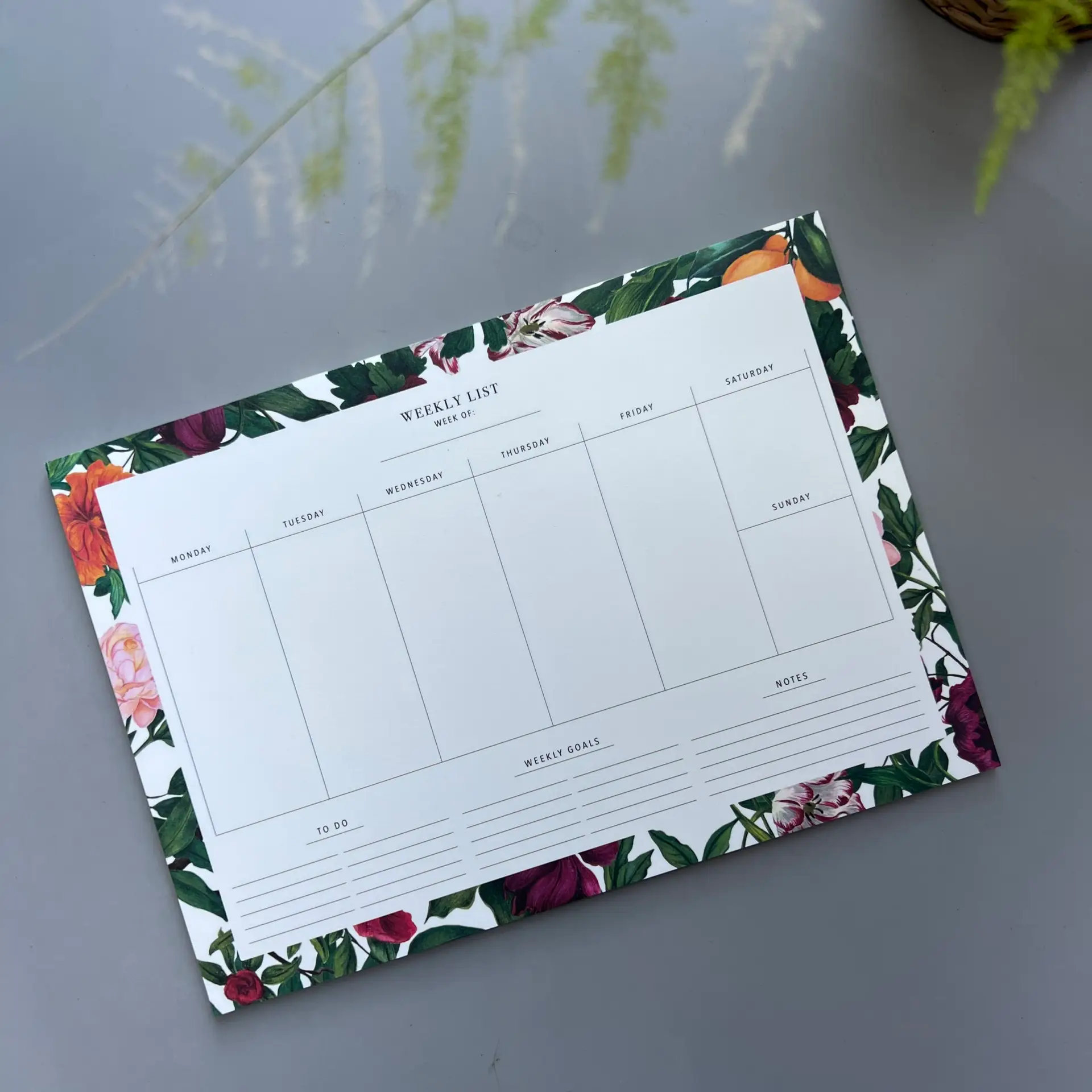 Breng overzicht en stijl naar je werkplek met de Bureauplanner De Engelse Tuin. Dit elegante weekoverzicht heeft een klassiek, minimalistisch ontwerp met groene bladeren, bloemen en subtiele sinaasappelaccenten, in zachte tinten van roze, bordeaux, oranje en donkergroen. Het tijdloze lettertype en de rustige indeling maken het makkelijk om al je afspraken, to-do’s en wekelijkse taken overzichtelijk bij te houden. De weekplanner is perfect voor thuis of op kantoor en combineert functionaliteit met een subtiele botanische uitstraling.