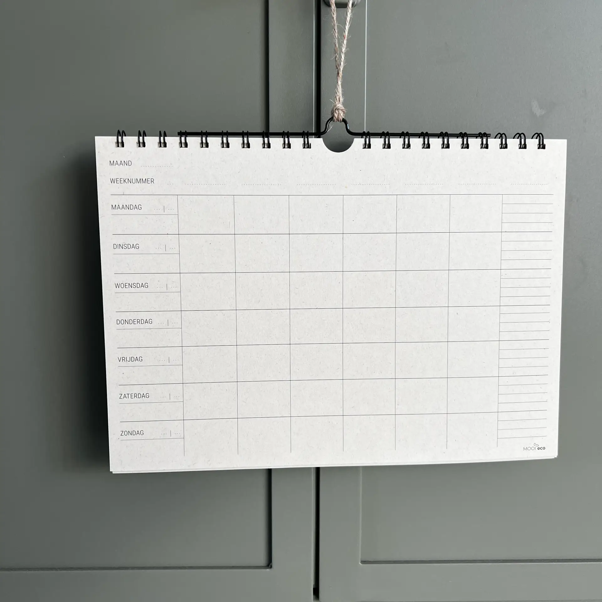 Een overzichtelijke weekplanner voor het hele gezin, met extra ruimte voor kleine notities. Met ruimte voor 6 personen, of zelfs 7 als je de laatste kolom flexibel gebruikt, houd je eenvoudig alle afspraken bij. Elk blad staat voor één week, waardoor je overzicht behoudt, ongeacht wanneer je begint. De gezinsplanner is met de hand gebonden met een zwarte ringband en voorzien van een handige haak. Dankzij de flexibele indeling kun je elk moment van het jaar starten met plannen met de Duurzame Familieplanner.