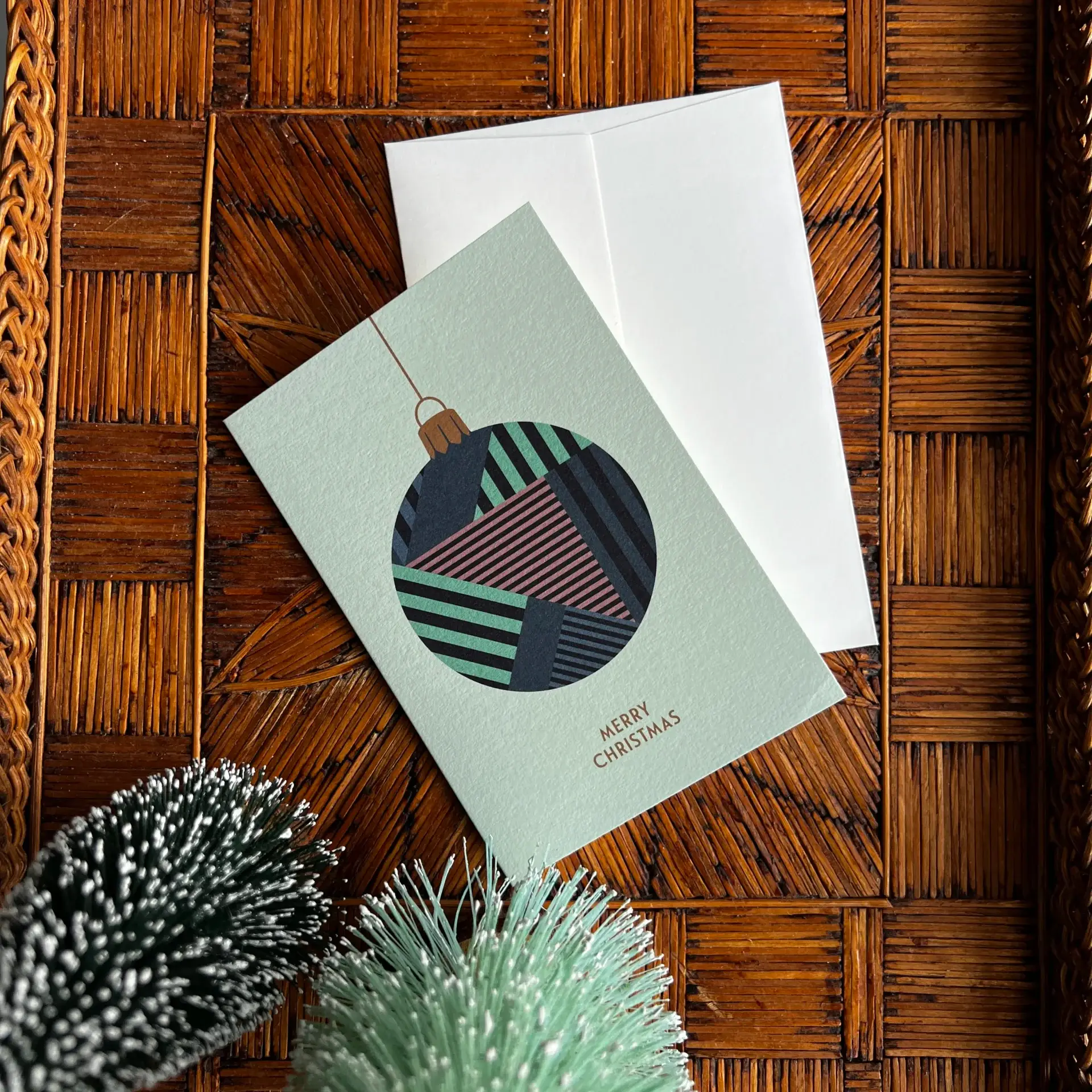 Deze stijlvolle Kerstkaart X-Mas Kerstbal heeft een moderne uitstraling zonder kitsch. Het groene ontwerp met een eigentijdse kerstbal springt direct in het oog en geeft een fijne kerstgroet. Perfect om te versturen naar familie of vrienden die houden van een moderne en feestelijke kerstsfeer. Inclusief bijpassende envelop.