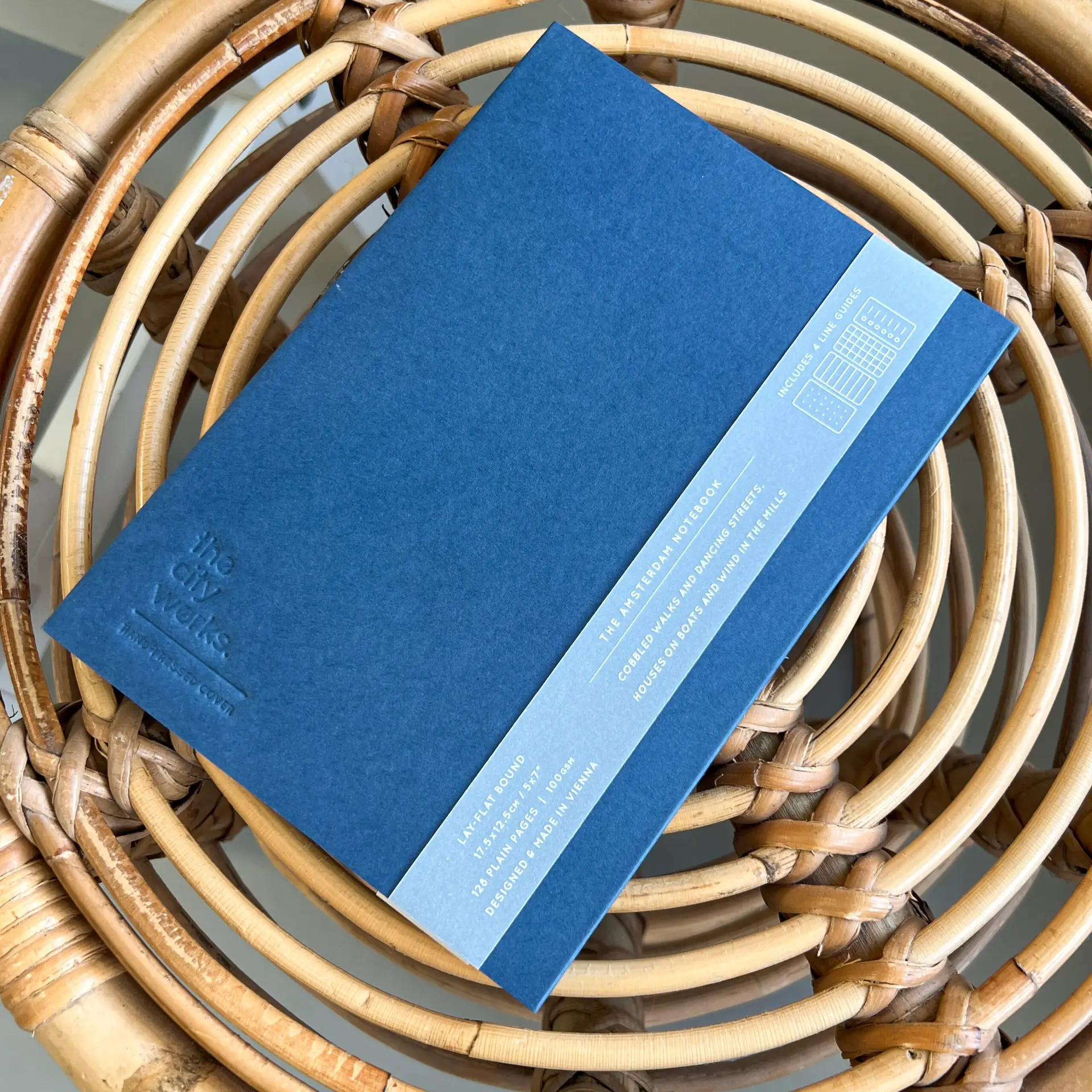 Notitieboekje Amsterdam Blauw – Ontdek dit charmante notitieboekje met de Amsterdamse looks in handzaam formaat – een blanco canvas voor jouw gedachten en avonturen. De met de hand bedrukte omslag en stijlvolle stadsnaam op de rug voegen een persoonlijk tintje toe. Ideaal om jouw reis, notities en ideeën vast te leggen. Gemaakt van duurzaam papier, is dit boekje jouw perfecte metgezel onderweg. Beleef Amsterdam in elke pagina!