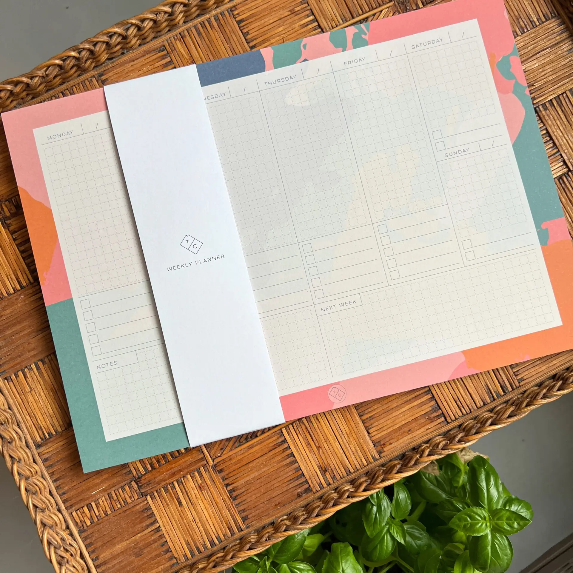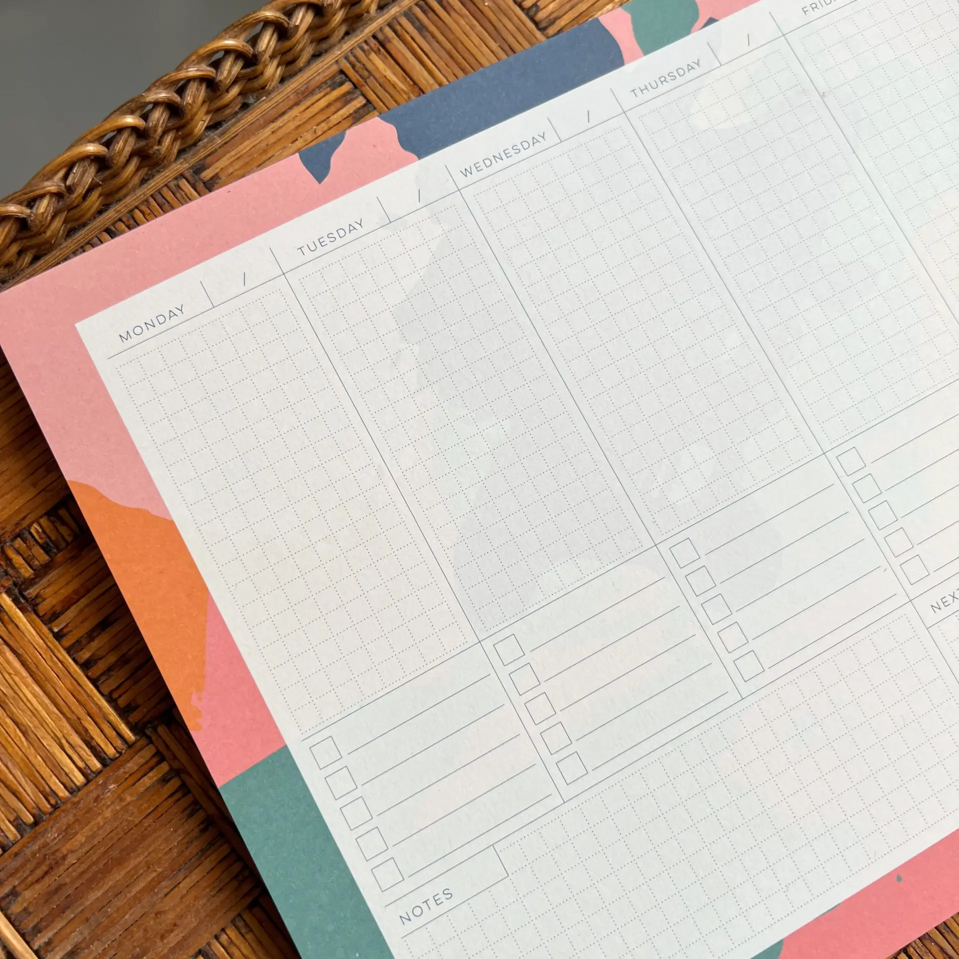 Setje weekplanner en notities Kleurrijk. Met deze overzichtelijke weekplanner en notitieblokjes heb je een elegante set waar je al jouw plannen en to do’s op kan noteren.