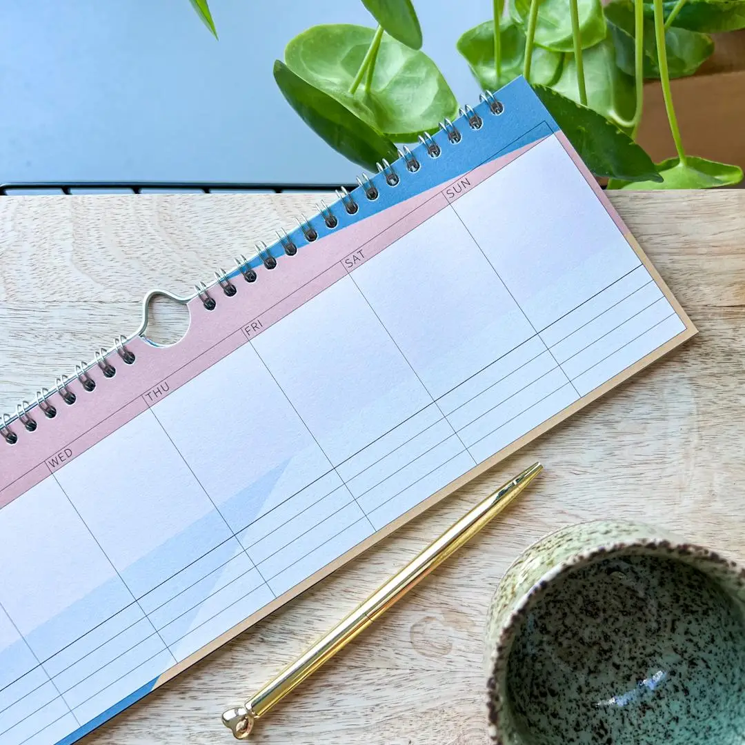 Breng kleur en rust in je planning met de Waterverf Weekplanner. Deze papieren planner helpt je om elke week overzichtelijk in te delen en al je taken en afspraken op één plek te noteren. Dankzij het A4-formaat heb je genoeg ruimte voor je to-do’s, notities en belangrijke afspraken. De handgeschilderde waterverf-elementen geven de weekplanner een vrolijke en unieke uitstraling, waardoor plannen een stuk leuker wordt. Ideaal voor thuis of op kantoor en perfect als cadeau. Creëer overzicht van jouw week en blijf georganiseerd met stijl!