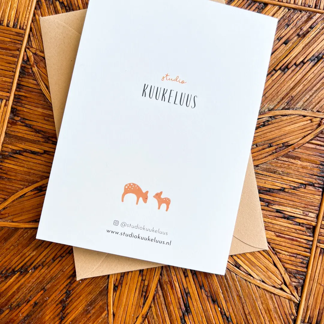De binnenkant van de kaart is blanco, zodat je alle vrijheid hebt om jouw boodschap op jouw manier te schrijven. Of het nu een lieve wens, grappige anekdote of uitgebreide felicitatie is, deze kaart maakt jouw woorden extra bijzonder.