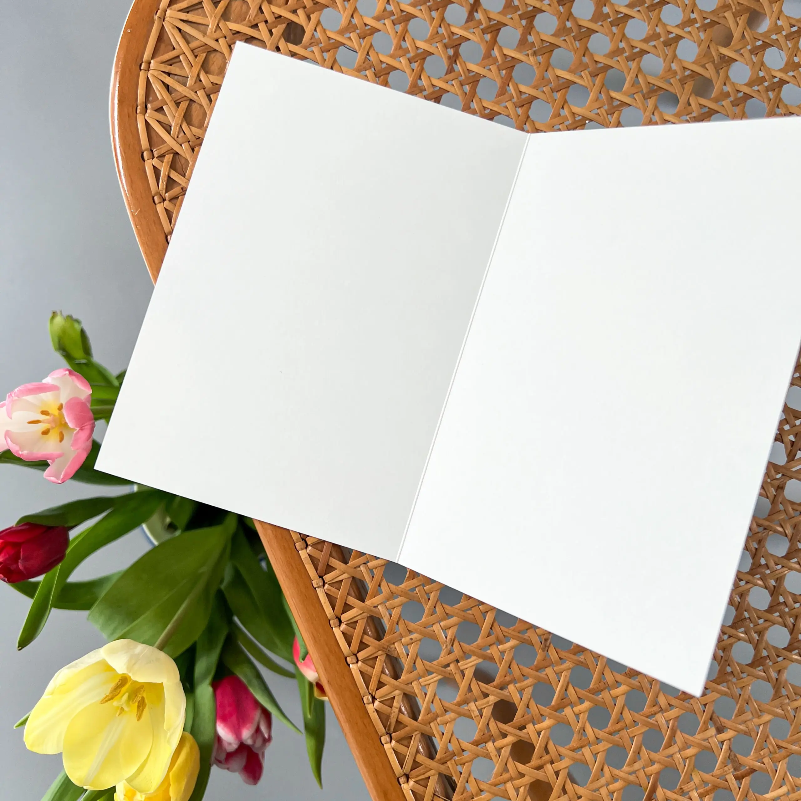 De binnenkant is blanco, zodat je alle ruimte hebt voor een persoonlijke, handgeschreven boodschap. Of je nu kiest voor een korte felicitatie of een uitgebreid bericht, dit kaartje geeft je woorden een stralende uitstraling.
