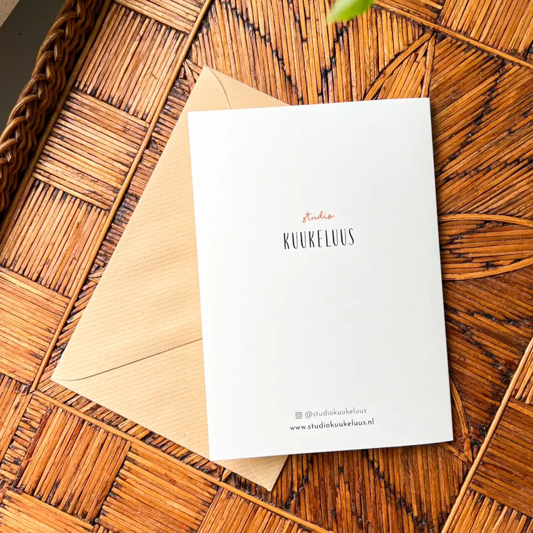 De binnenkant is blanco, zodat je alle ruimte hebt om jouw persoonlijke felicitatie te schrijven. Of het nu een korte wens is of een uitgebreid bericht vol liefde, met dit kaartje geef je jouw woorden een bijzondere uitstraling.