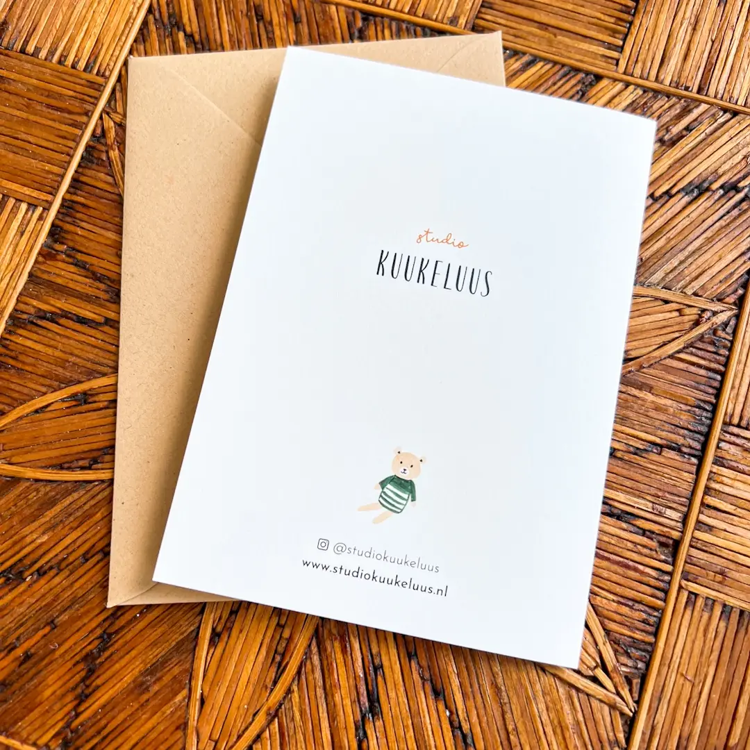 De binnenkant is blanco, zodat je alle ruimte hebt om jouw persoonlijke felicitatie te schrijven. Of het nu een korte wens is of een uitgebreid bericht vol liefde, met dit kaartje geef je jouw woorden een bijzondere uitstraling.