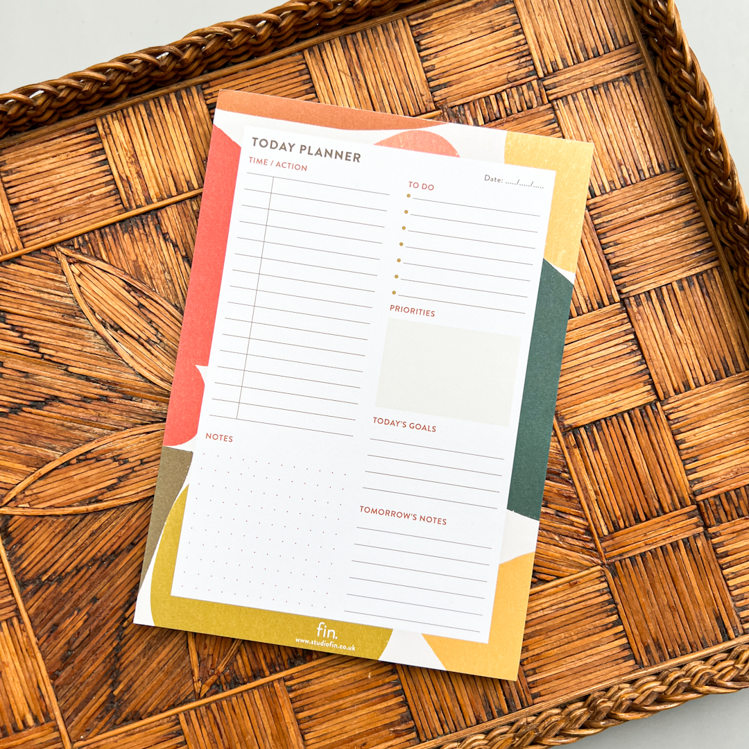 Dagplanner Spots & Stripes – Heb je behoefte aan een duidelijk overzicht van je dag? Met deze dagplanner plan je je hele dag eenvoudig van begin tot eind. Het ontwerp heeft een zachte, abstracte pastelprint en is overzichtelijk ingedeeld in handige vakjes. Hierdoor kun je moeiteloos afspraken, to-do’s en notities organiseren.