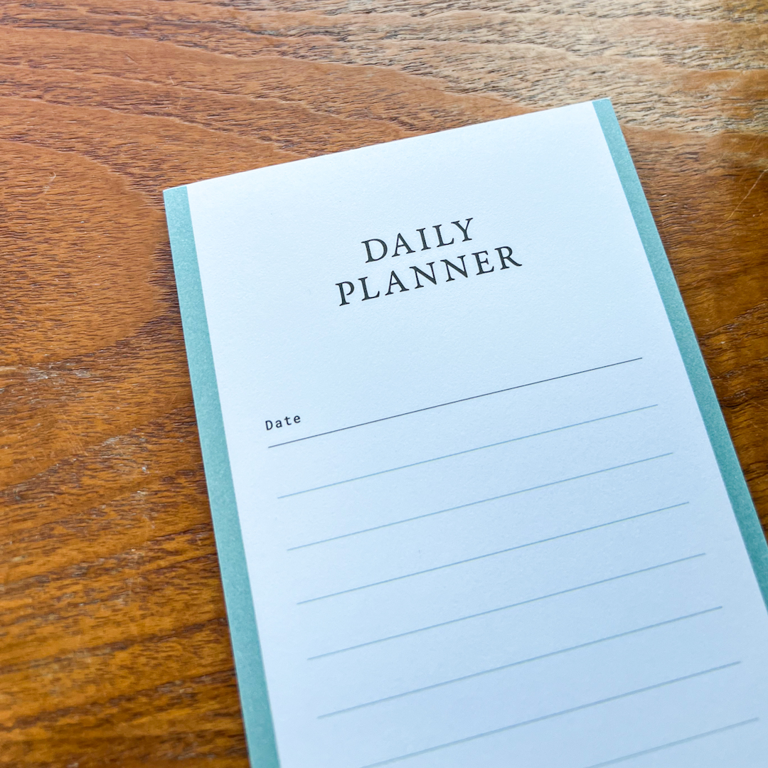 Notitieblokje Klassiek Dagplanner. Door zijn lange formaat en voldoende ruimte kun je het notitieblokje overal voor gebruiken. Dagplanner, boodschappenlijstje of je to-do’s.